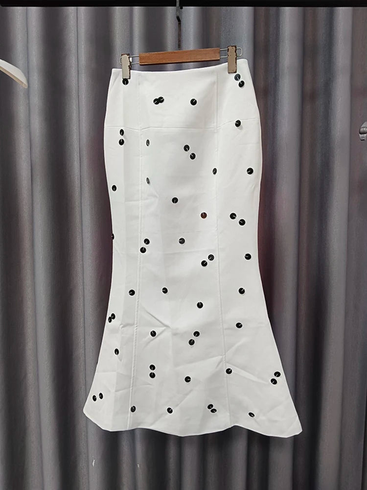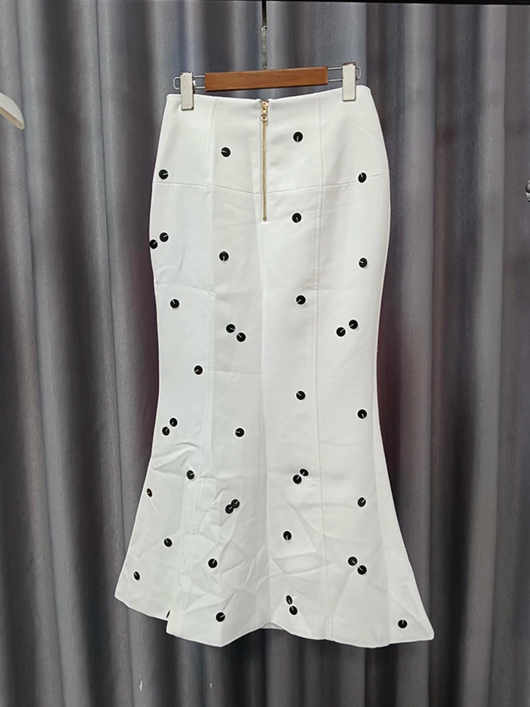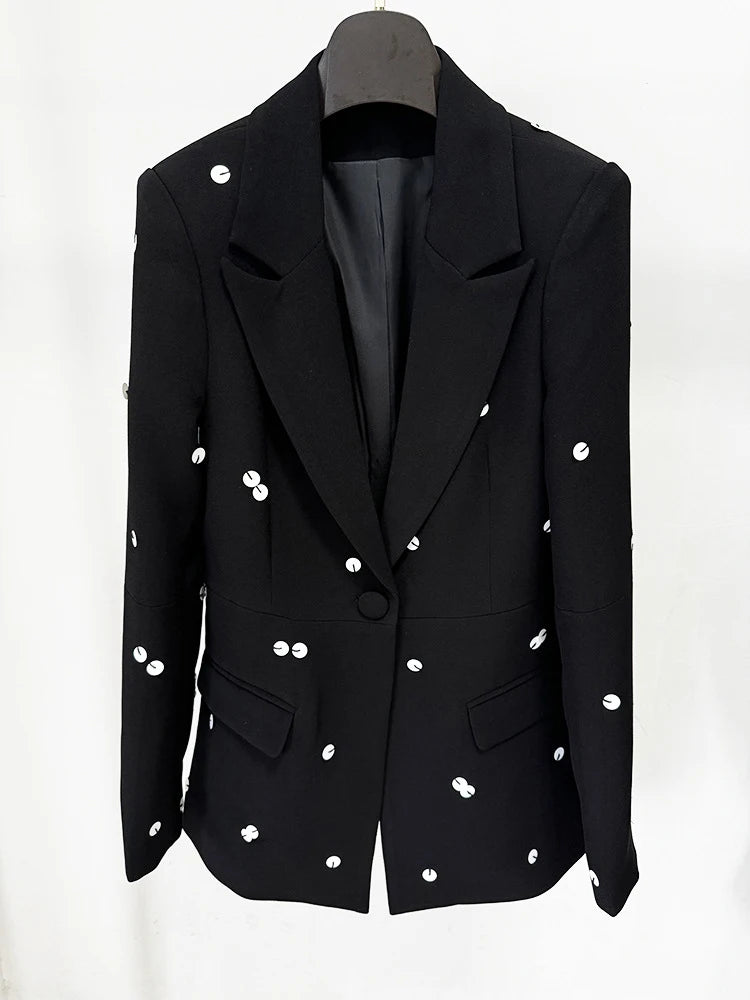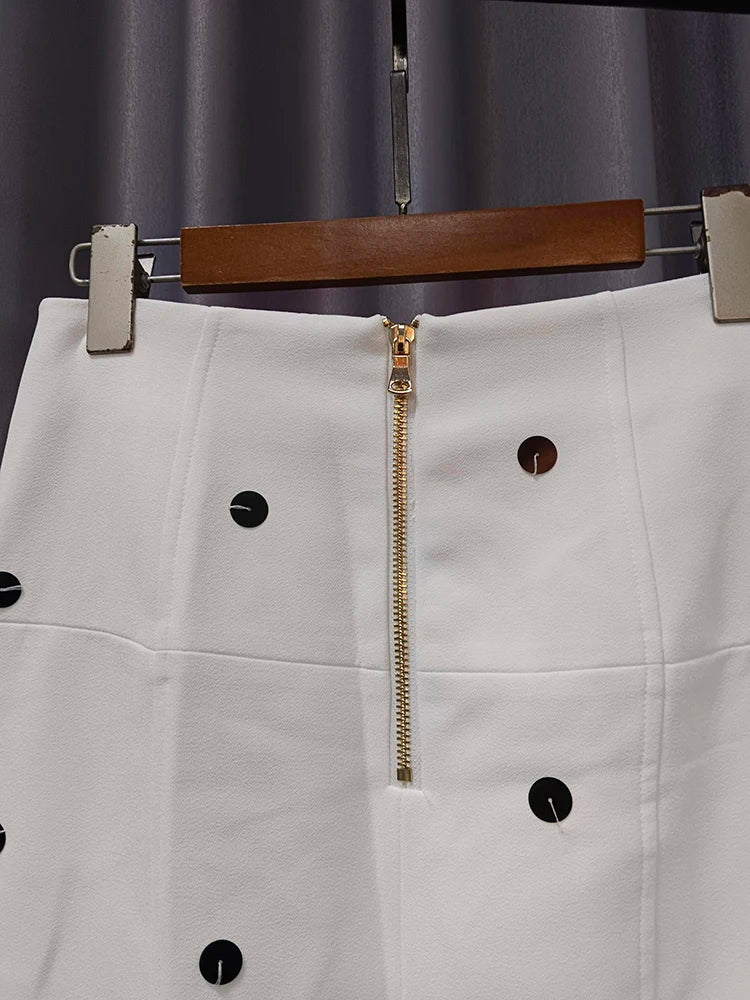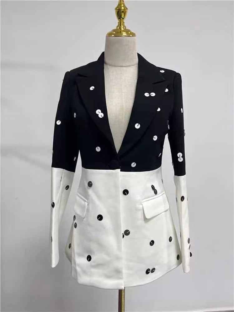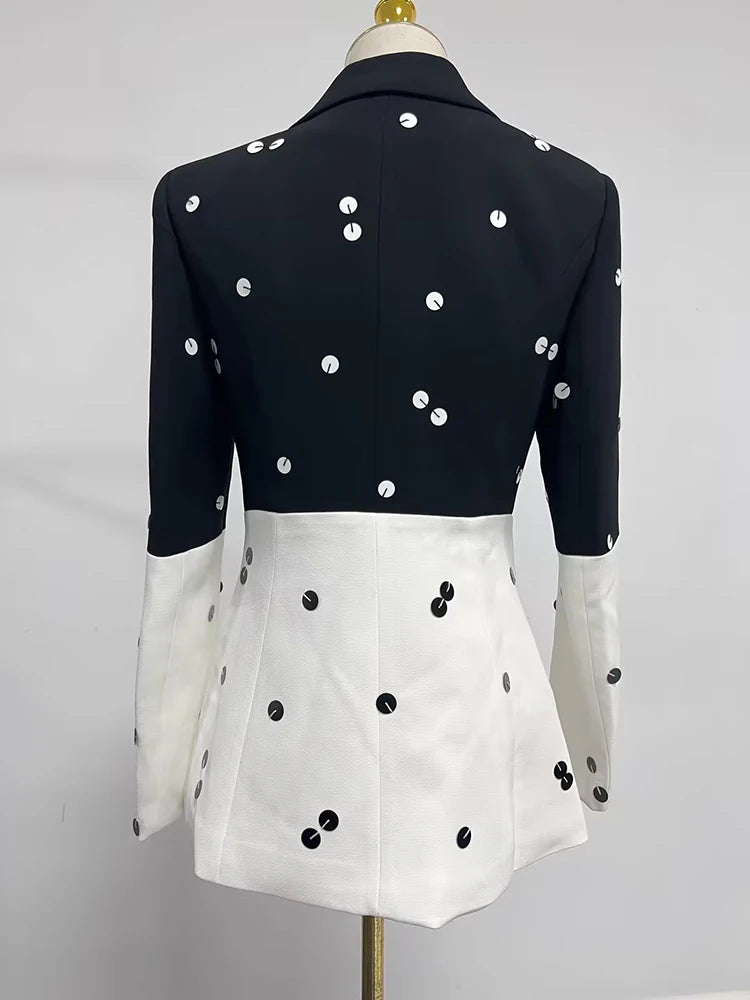 Color Block and Dots Two Piece Blazer and Skirt Set