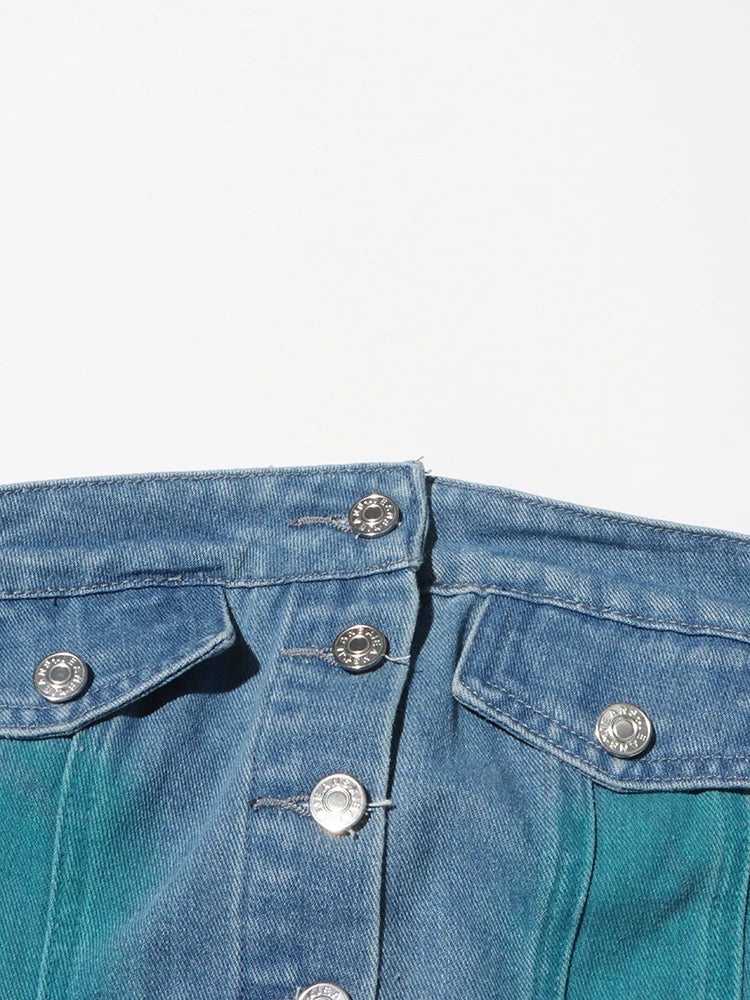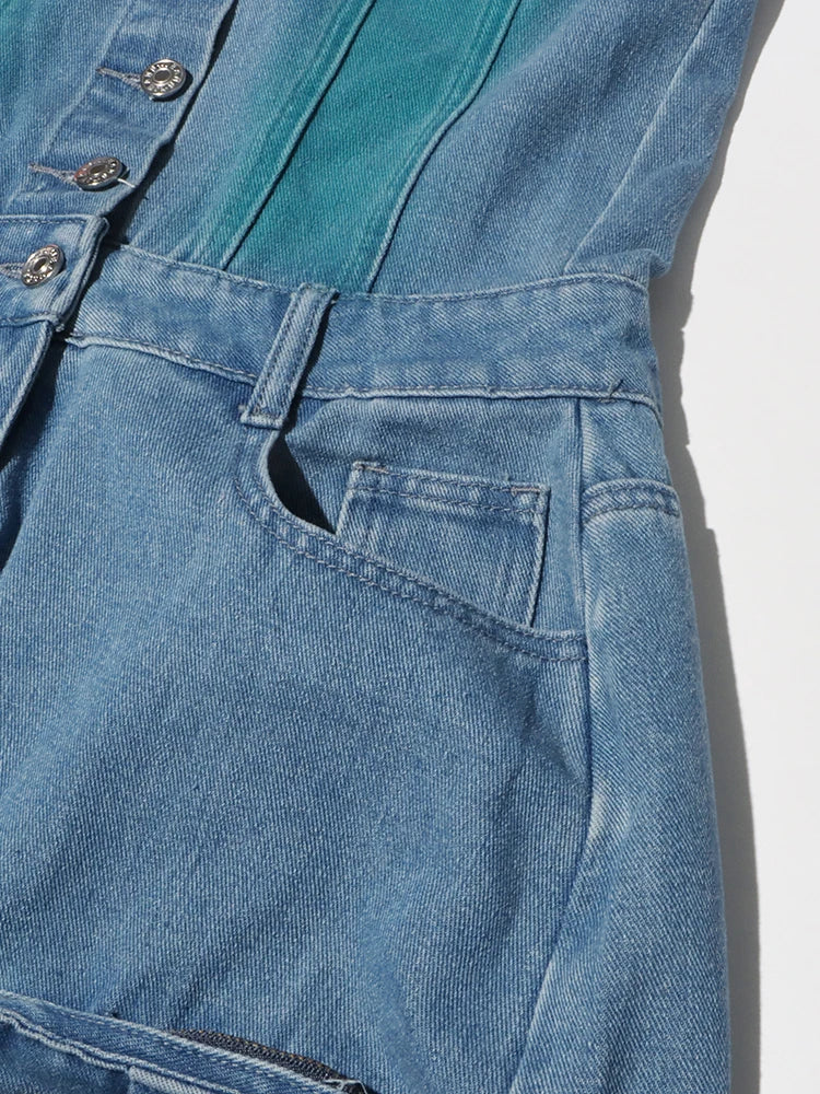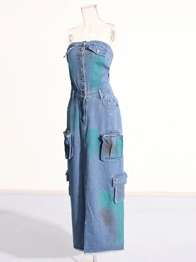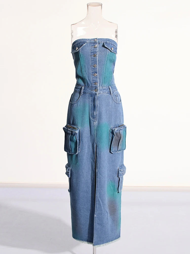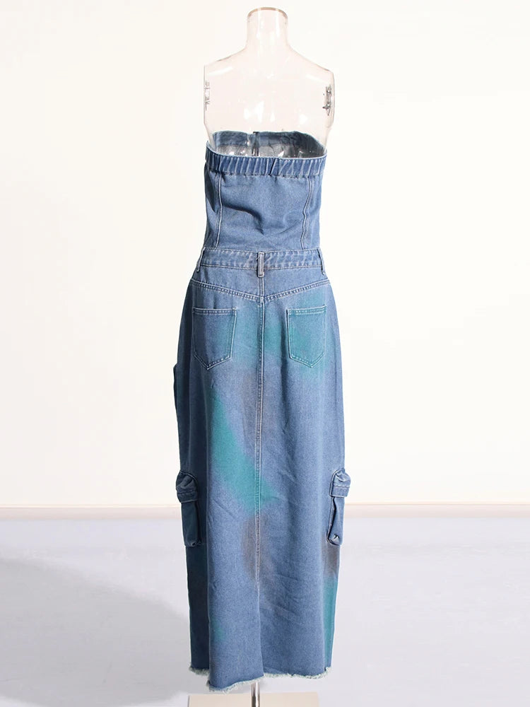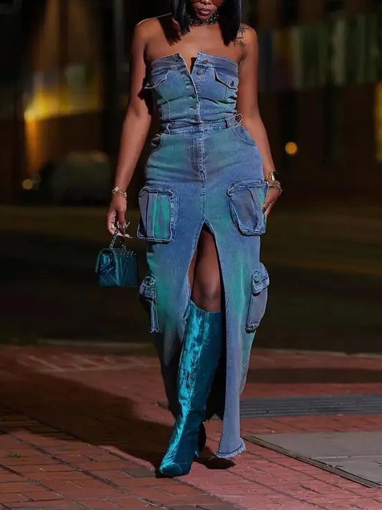 Denim Strapless High Split Dress