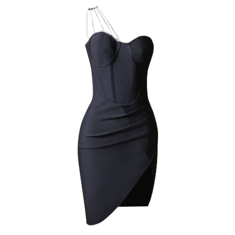 One Shoulder Crystal Diamonds Mini BDress